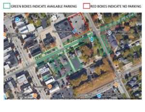Parking: Parking can be a challenge!  See green boxes on jpg.